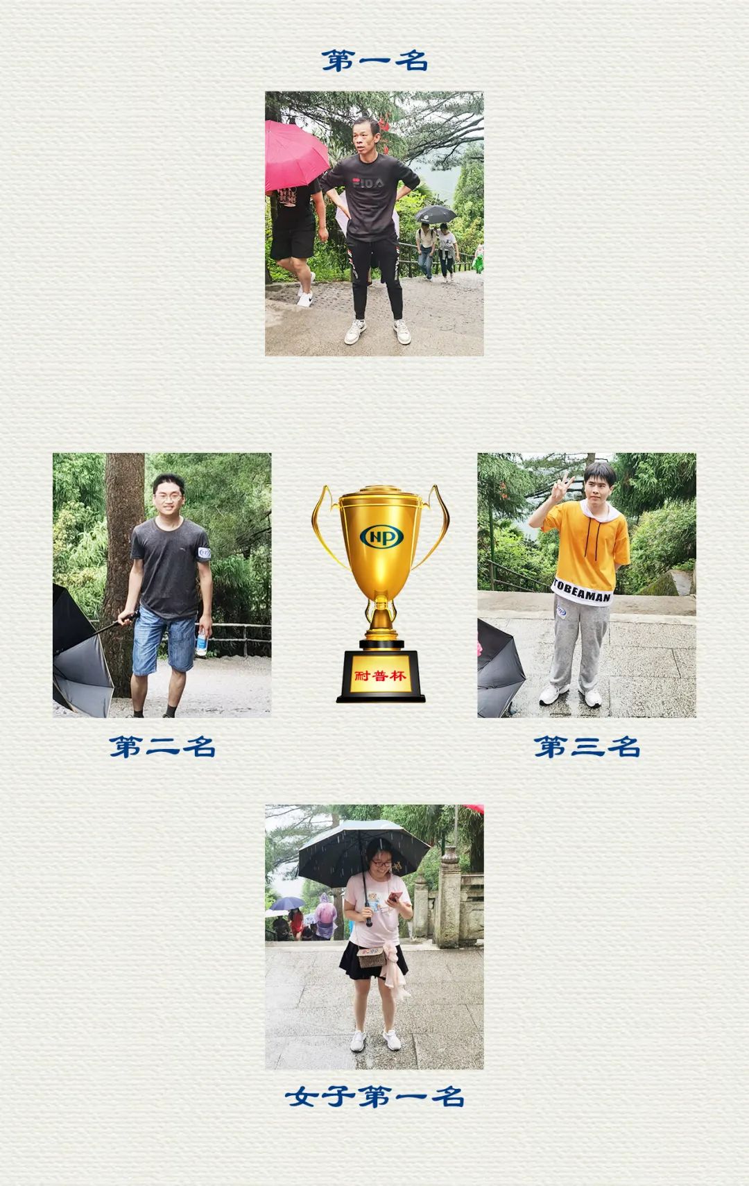 经由裁定,运动中获得男、女组前三名的队员欢呼雀跃,分享着团队的荣耀,他们将获得公司揭晓的奖品。